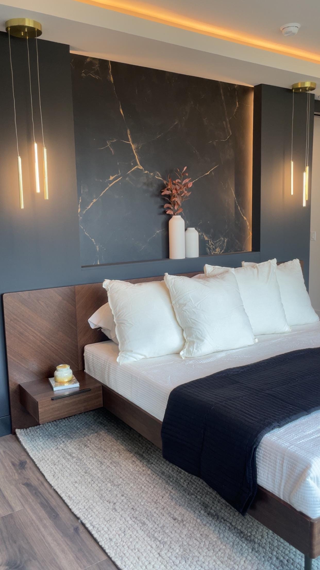 This custom black marble wall mural creates a bold, high-end look that paint cannot achieve.